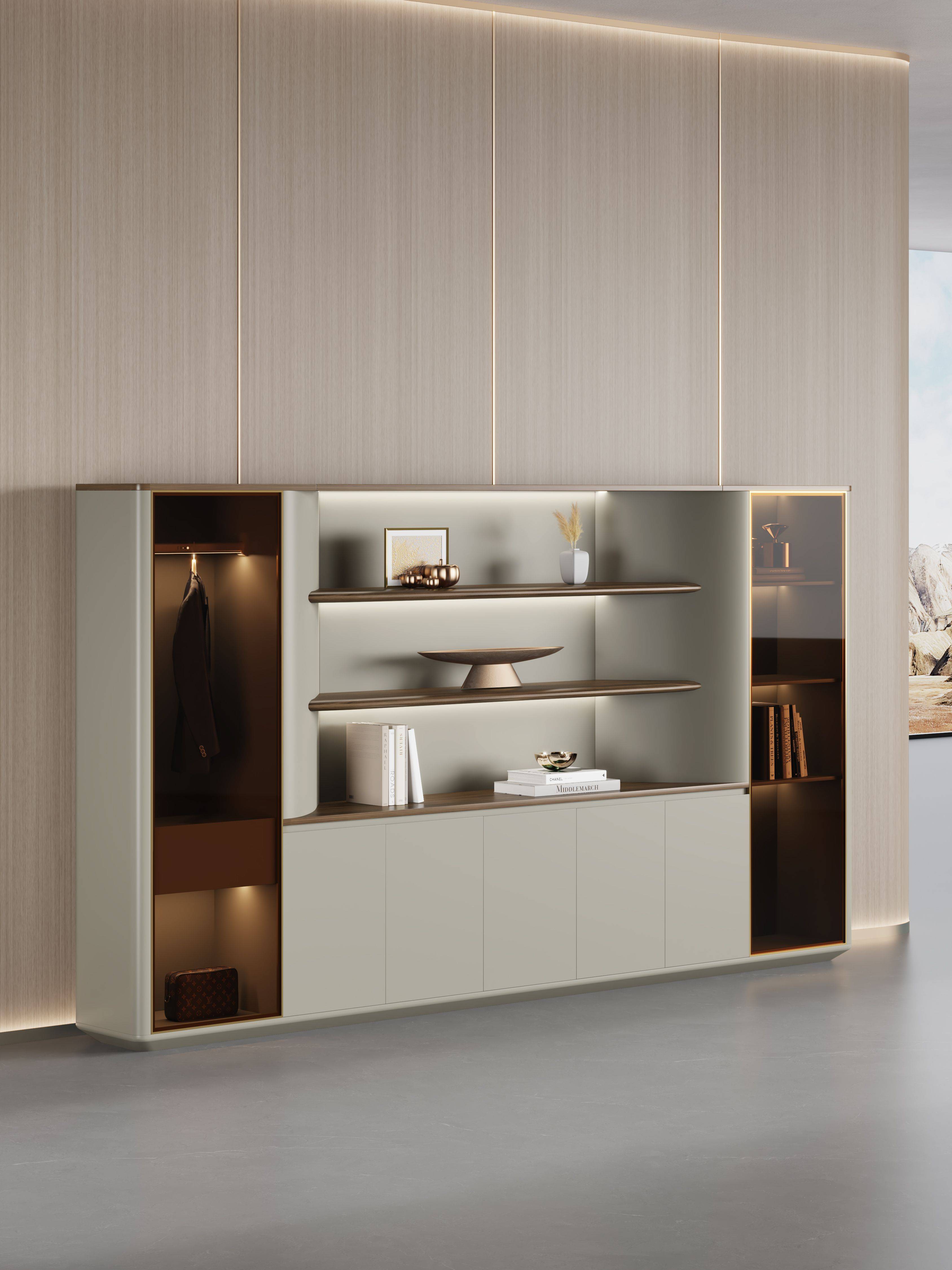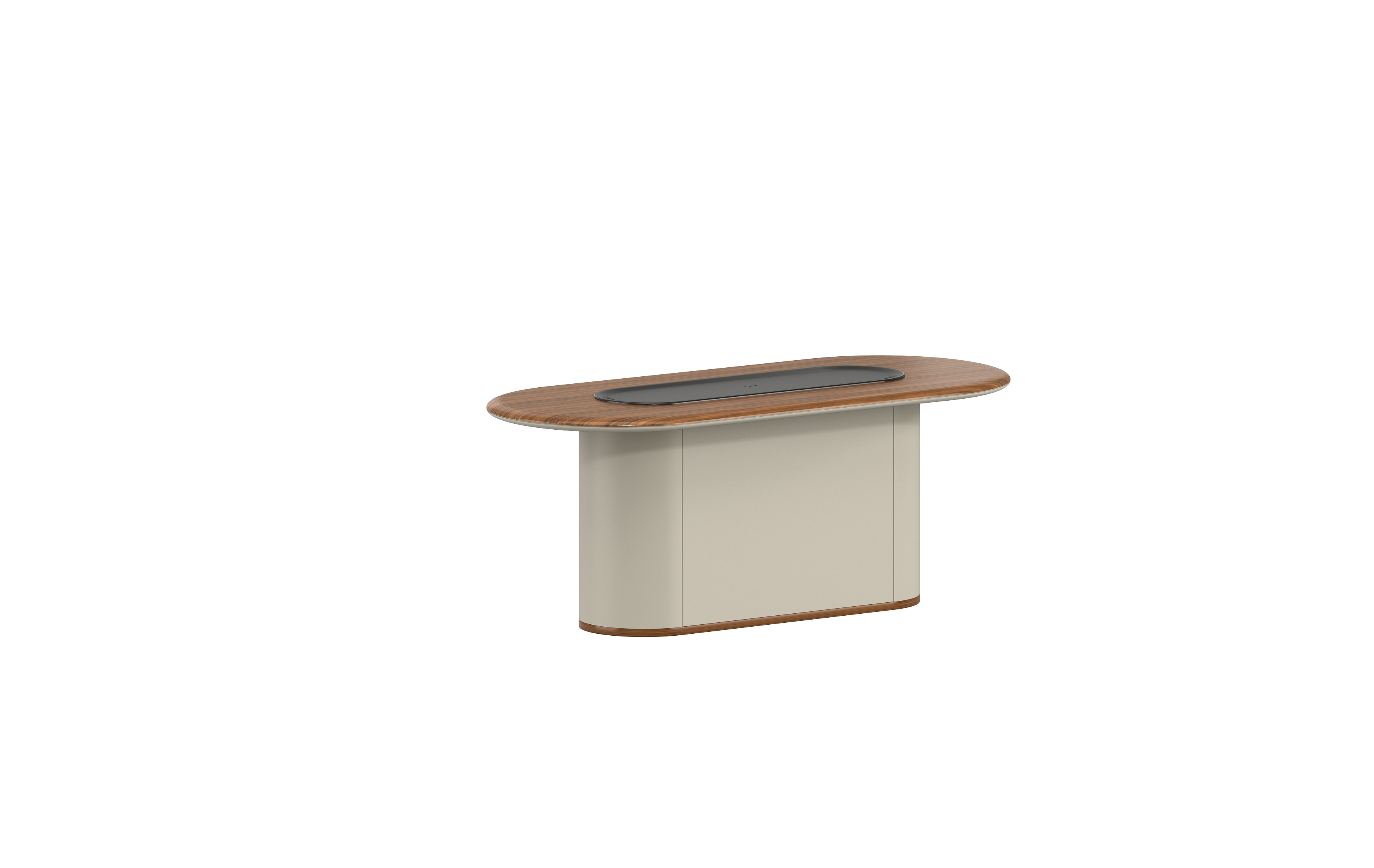 2、台面活动闪银色线槽板,两边毛刷出线孔;内装多功能插座:国标电源X2、网络、电话、VGA,铝合金材质,表面欧洲氧化;