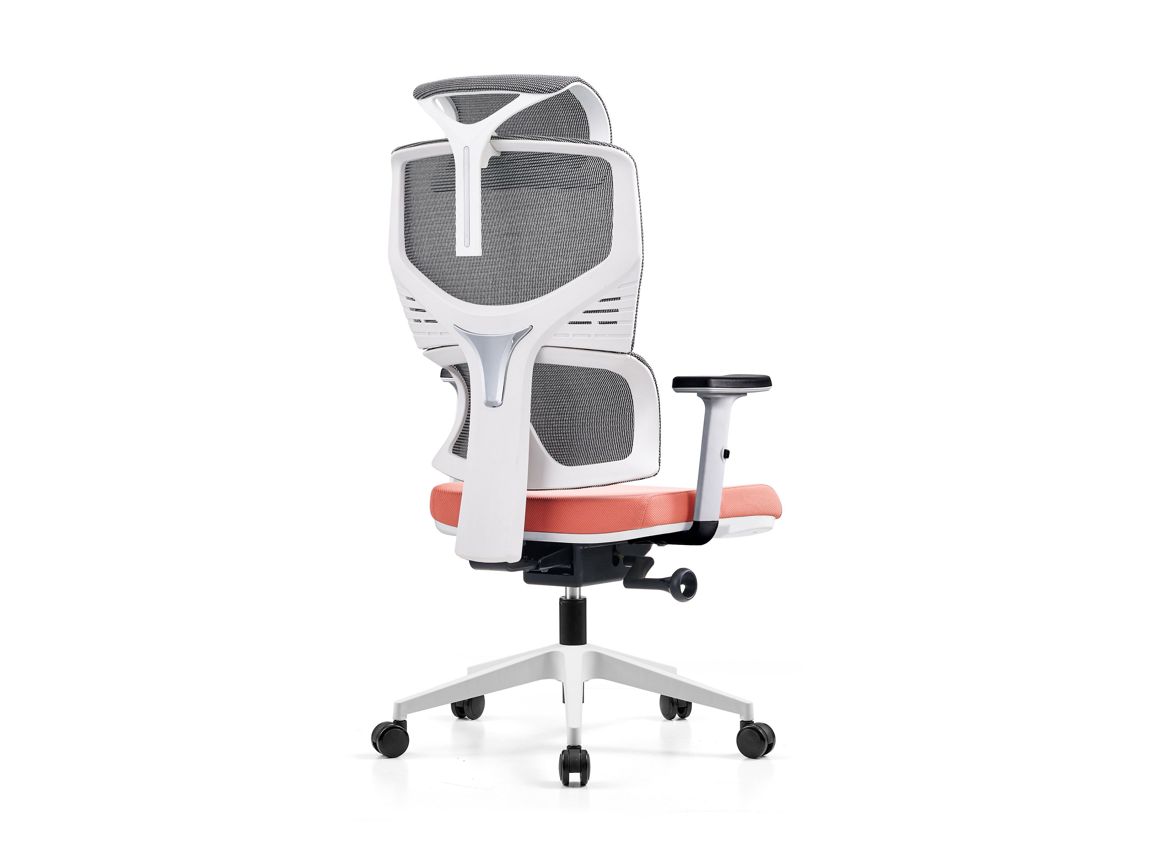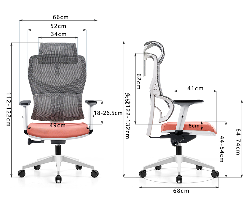高背主管椅,1.可升降网头枕;2.白色全新料加纤背框,扪进口过测试特网;3.腰部符合人体公学顶腰设计、更加舒适;4.白色全新料可升降2D扶手,TPU黑色扶手面;5.座包一体成型定型海绵+塑胶底壳,永不变形,扪华宇透气网布;6. 3.0mm厚度单手柄自载重底盘;7.三级SGS认证气杆,100mm缩50mm;8.340mm白色尼龙高脚,静压1000KG;9.60mm尼龙+PU静音脚轮过BIFMA。