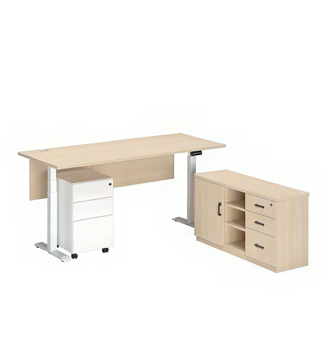 1.台面板饰面采用优质三聚氰胺板, 桌面板材需具有防菌防霉检测报告。台面厚度25mm,饰面厚度15mm,PVC胶边,具防火、耐磨、防污、牢固耐用,面板采用E1级环保板材。